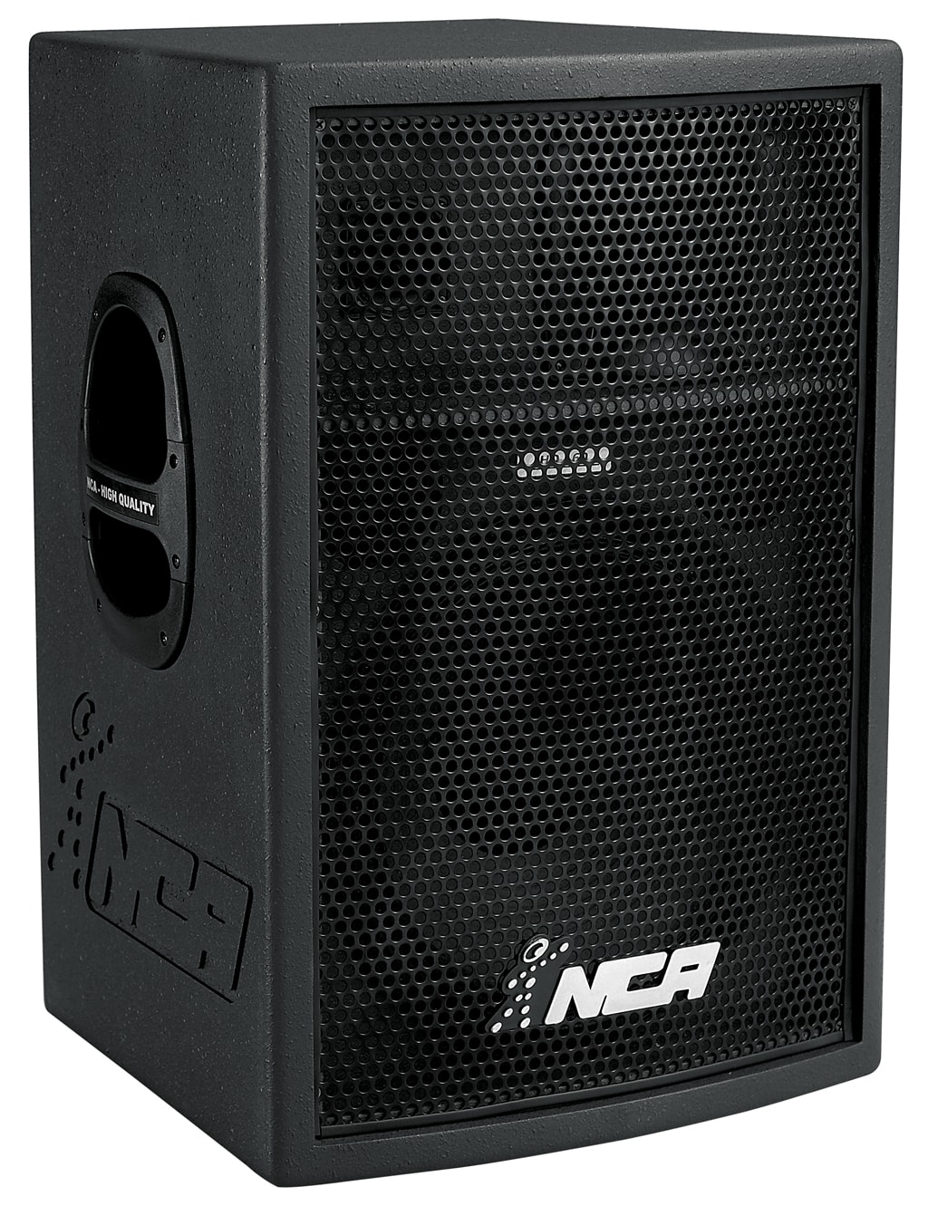 Gabinete trapezoidal 2 e 3 vias, pintura epóxi texturizada, proteção do sistema eletro-acústico em tela de aço, suporte para pedestal e alças laterais.