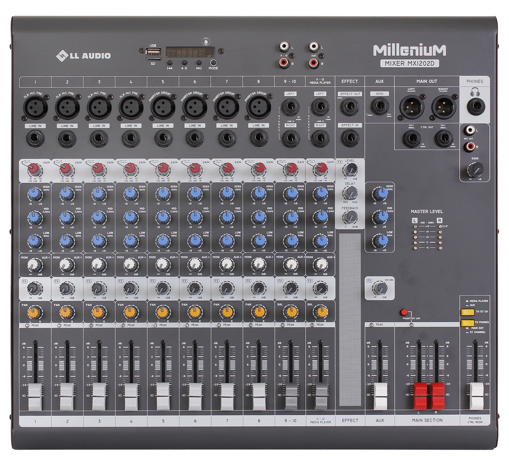 MAIN OUT - 2 conector P10 - saída L/R com controle de volume “MAIN MIX