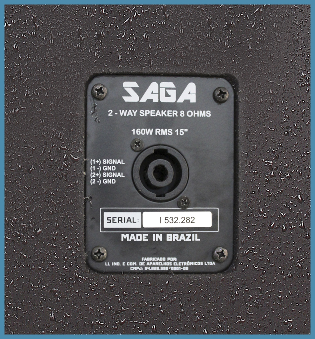 potência - 160W RMS alto falante - Woofer 15", Drive Titanium 1" dimensões (mm) - (H) 635 (L) 445 (P) 407 (embalado) peso (kg) - 15,60 Kg (embalado)