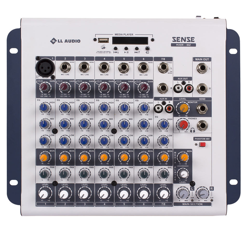Aprimore seus sentidos com a as novas Mesas Premium da Linha Sense. Alimentação Phantom Power, pré-amplificadores de microfone com Ganho e Equalizadores de 3 vias, saída de Monitor com volume independente por canal, Master e Fones de Ouvido.