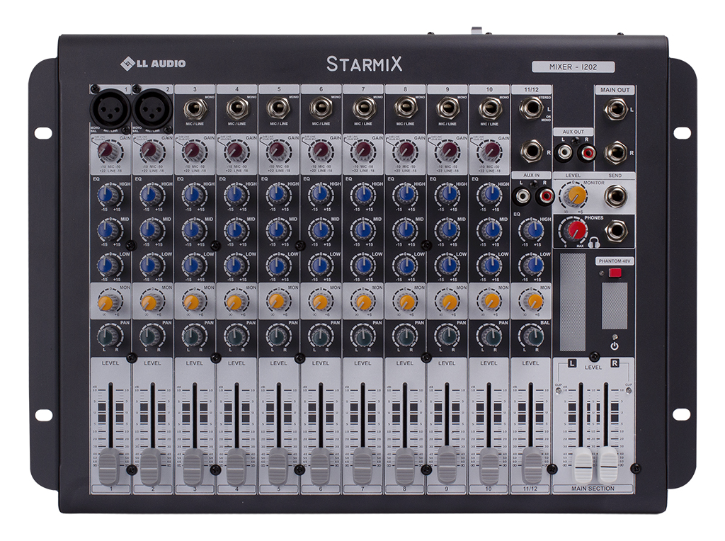 Renovada e mais compacta apresentamos as novas mesas premium da Linha Starmix, pré-amplificadores de microfone com ganho e equalizadores, alimentação Phantom Power, saída de Monitor com Volume Independente por Canal e Master e Fone de Ouvido.