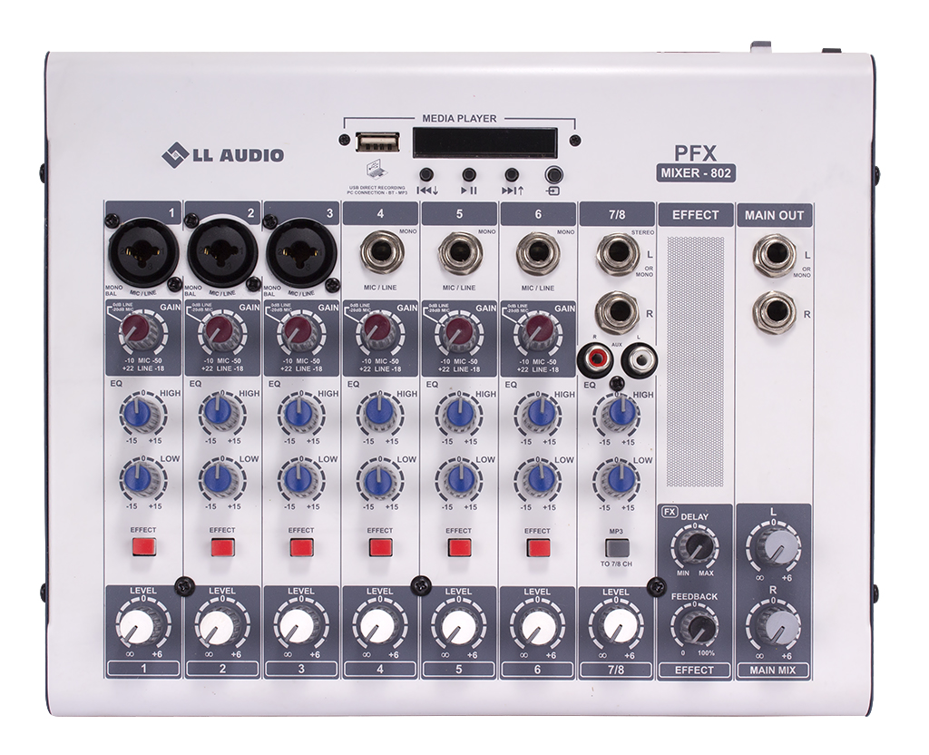 O som pulsa nas batidas do seu coração, não importa a sua preferência musical! A nova linha de mesas de som PFX está disponível em 4 e 8 canais, com efeito ECHO, controle de ganho e equalização de duas vias por canal, além de saída estéreo.