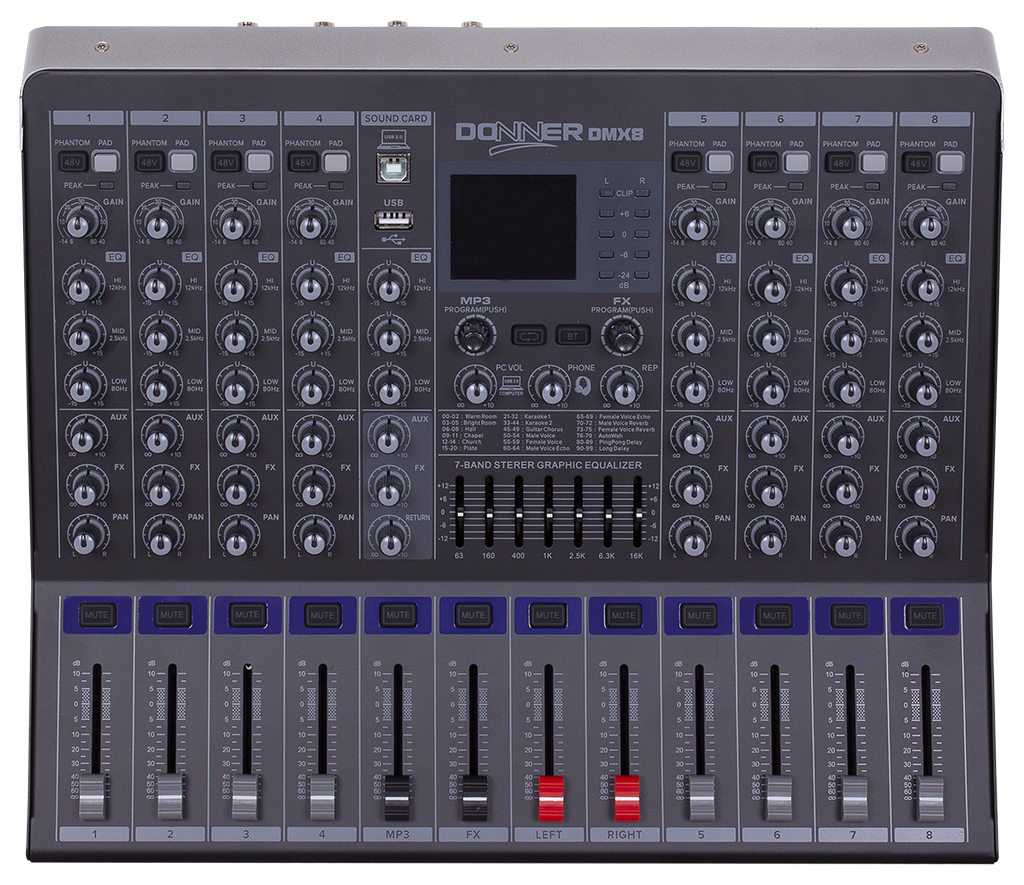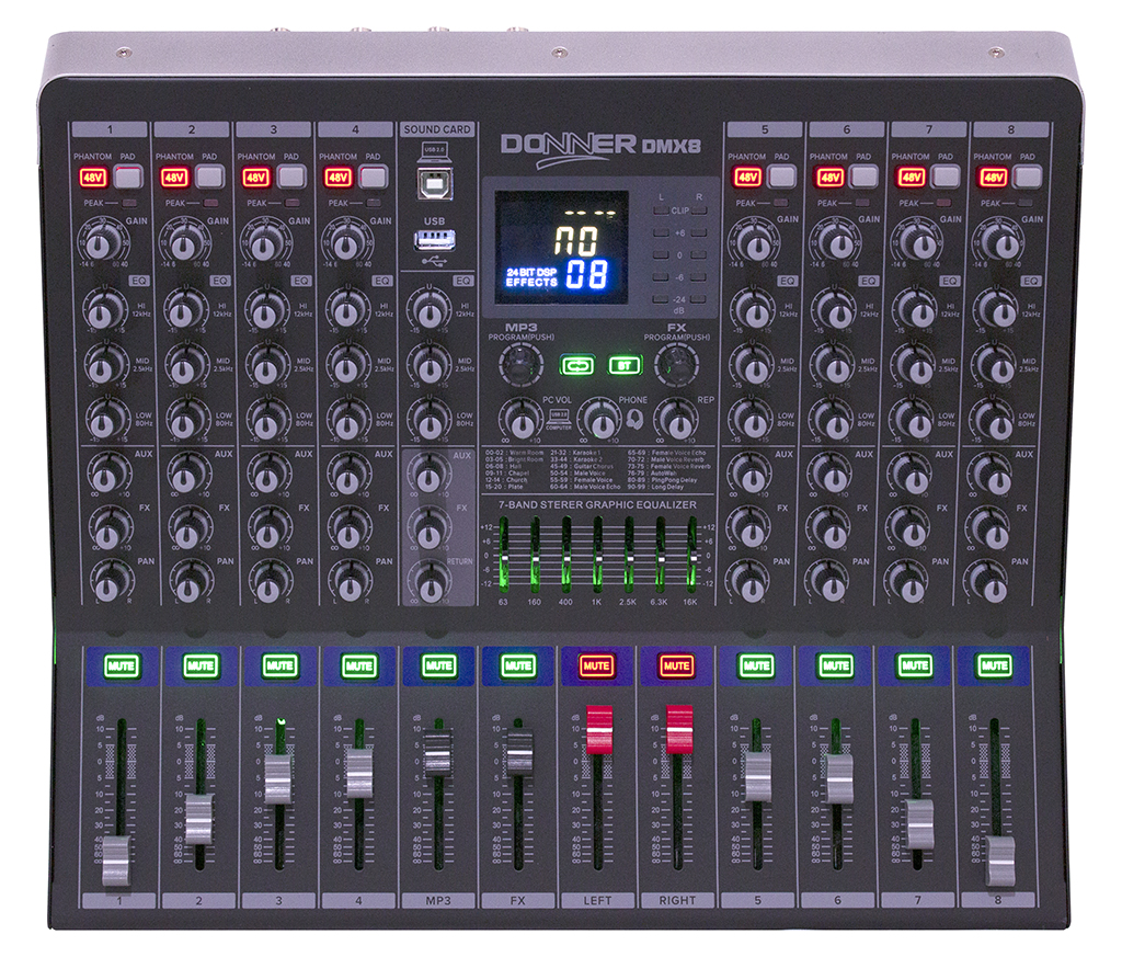 A DMX8 é sinônimo de potência e qualidade de estúdio em um mixer completo de 8 canais.