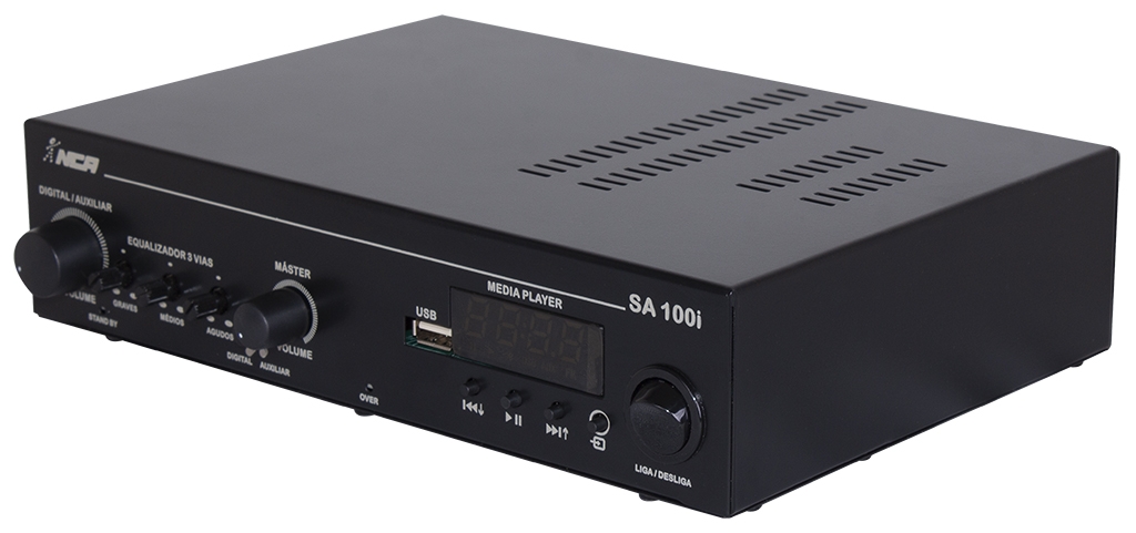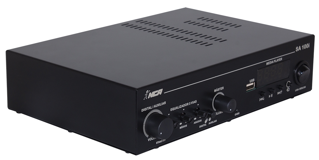 O SA 100i é um amplificador de 100W RMS em 4Ω, com volume máster, que permite a ligação direta de 2 caixas de 8Ω ou de até 8 caixas em série/paralelo. Projetado com amplificação Classe AB, entrega som limpo e consistente para sonorização de ambientes como academias, bares, empresas, áreas de lazer, clínicas, espaços gourmet e outros.