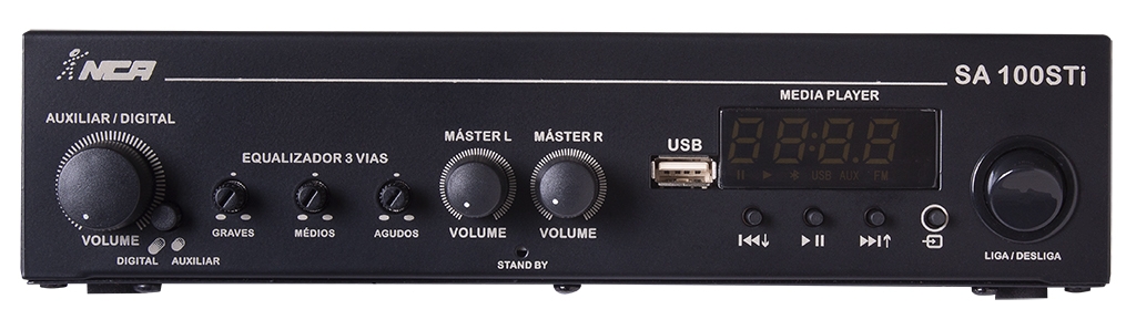 SA 100STi – conectividade completa em estéreo para sonorização de ambientes.