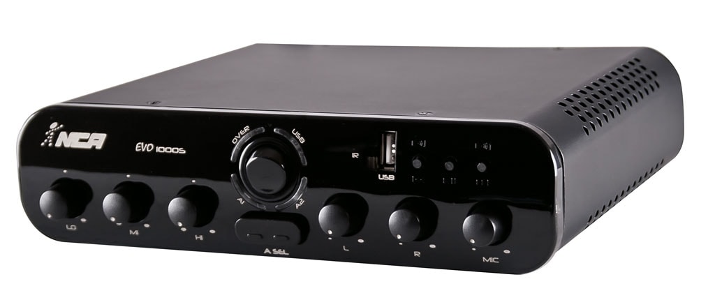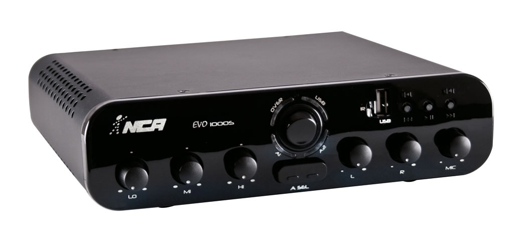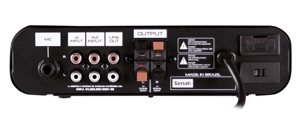 Entradas: 1 USB, 1 mic P10 / 2 AUX RCA com Chave Select