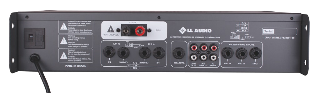 2 Entradas auxiliares IN com conectores P10 (canais L/R)
