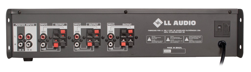 Conjunto de 06 amplificadores mono  de 30W RMS cada. Dual Zone com volume MASTER independente (IN A e IN B), VU ou até 06 entradas mono com volumes individuais. Chaves de seleção individuais com indicação luminosa e saídas independentes. Permite a utilização com o setorizador de canais ST100.
