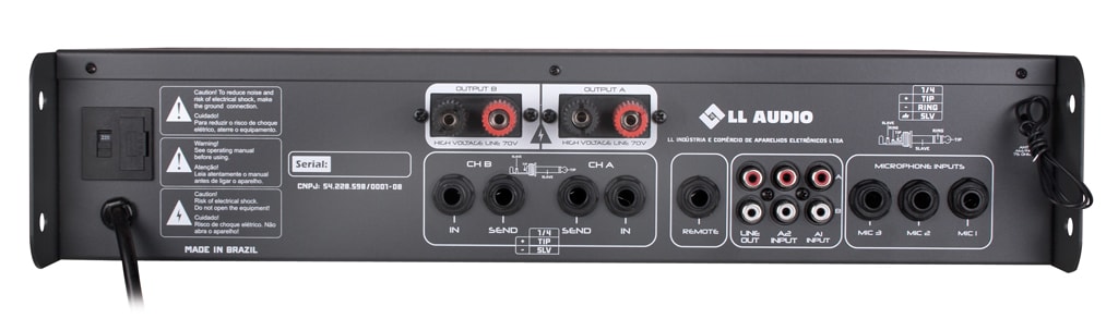 2 Entradas auxiliares IN com conectores P10 (canais L/R)