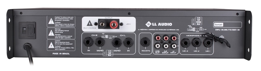 2 Entradas auxiliares IN com conectores P10 (canais L/R)