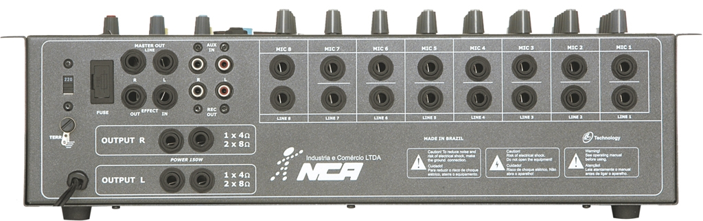 Potência máxima total (sem distroção): 150 W RMS em 4 Ohms
