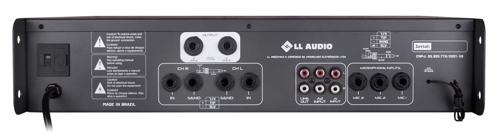 2 Entradas auxiliares IN com conectores P10 (canais L/R)