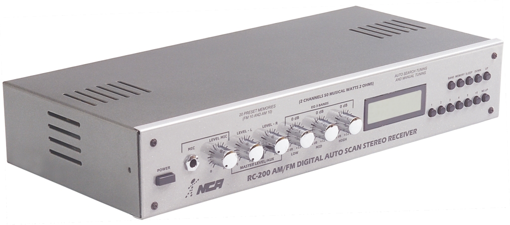 Receiver estéreo, com 300 W RMS por canal, que oferece um som de excelente qualidade, podendo reproduzir até 8 caixas de 8 Ohms com potência individual de 12,5 W musicais. Incorpora tecnologia digital e possui ótima recepção de sinais AM e FM. POssui AUTOSCAN, busca manual e automática de estações, memória para 10 estações AM e 10 FM. Ainda possui 2 entradas auxiliares com chave de seleção, entrada de microfone P10 com volume independente e equalizador de 3 bandas.