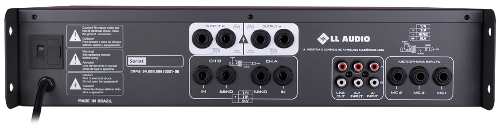 2 Saídas OUTPUT A e OUTPUT B com 2 conectores P10 cada e (C.V.I.)*