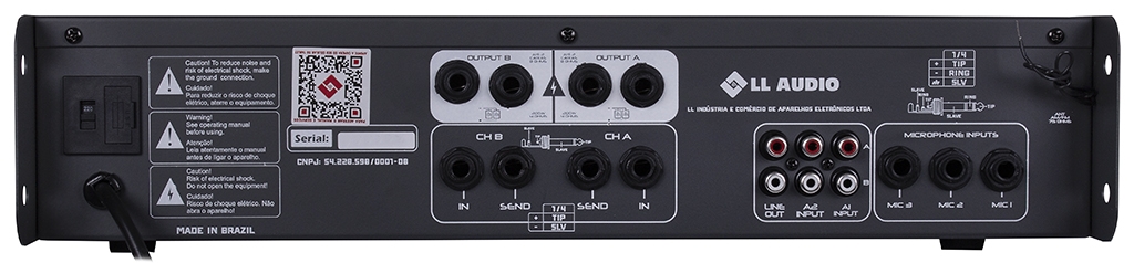 2 Saídas OUTPUT A e OUTPUT B com 2 conectores P10 cada e (C.V.I.)*