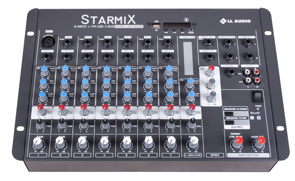 MAIN OUT: saída L / R da mesa com controles individuais de volume “MAIN MIX”
