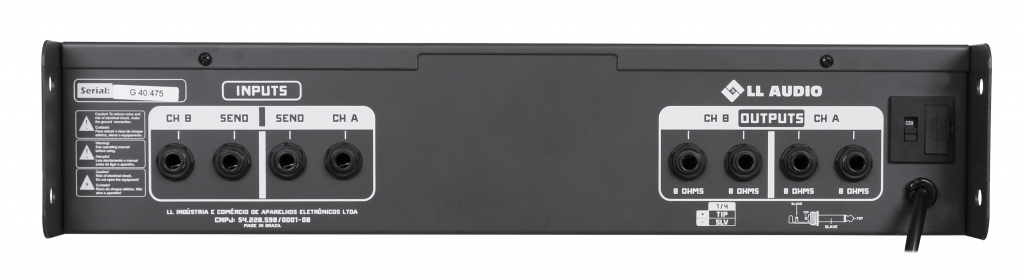potência máxima por canal - 75W RMS @ 4 Ohms