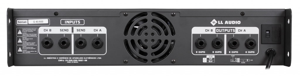 potência máxima por canal - 100W RMS @ 4 Ohms