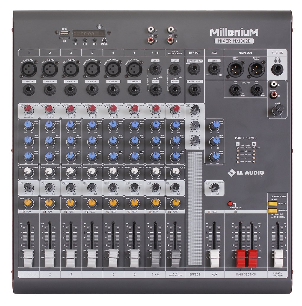 MAIN OUT - 2 conector P10 - saída L/R com controle de volume “MAIN MIX