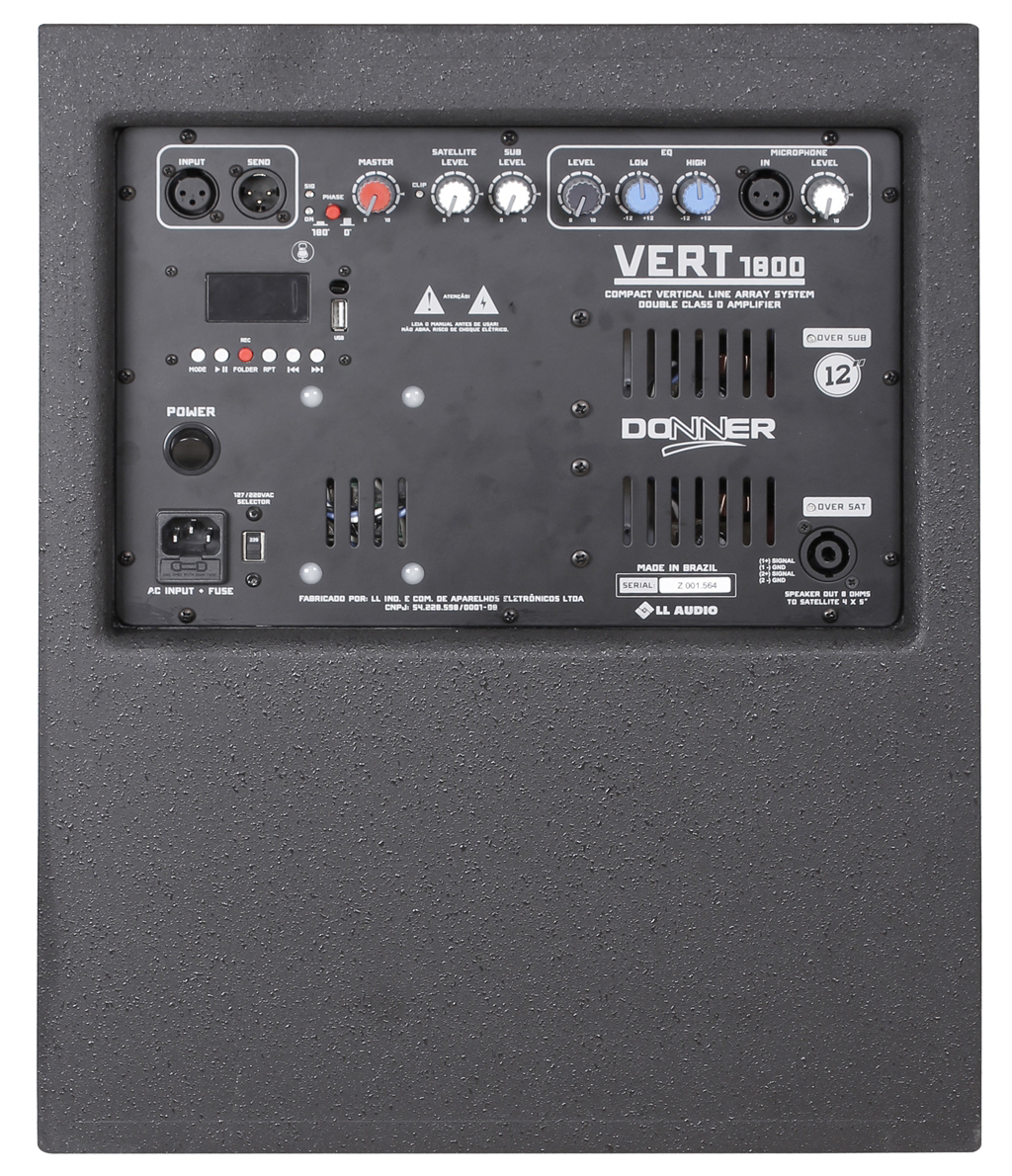 Line Array Vertical – Sistema de 450W RMS composto por Subwoofer de 12” Bass Reflex e Satélite com 4 Falantes banda larga de 5” mais 1 Drive Titanium de 1”. Controles de volumes independentes para o subwoofer, para o satélite e para as entradas de microfone e USB. Com excelente pressão sonora (SPL) e qualidade vocal única o Vert 1800 é a solução perfeita para apresentações ao vivo, DJs, igrejas, eventos corporativos, etc. Acompanha cabo e suporte e é compatível com a tecnologia bluetooth.