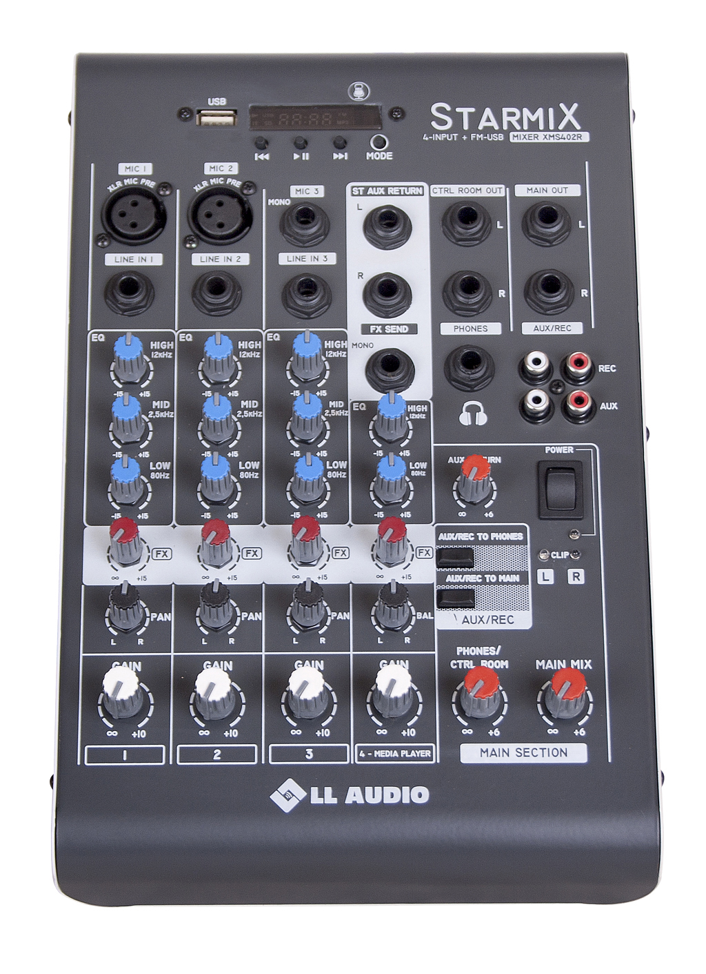 MAIN OUT: saída L / R da mesa com controles individuais de volume “MAIN MIX”