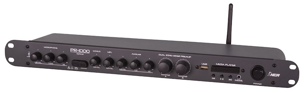 Pré amplificador Dual Zone* com Media Player, entrada de áudio digital (Ótica e Coaxial), entrada Auxiliar, Gongo e Mic Priority**. Ideal para sonorização de ambientes como empresas, comércios, escolas, clubes, condomínios, com qualidade e praticidade.