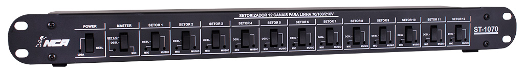 Setorizador 2 canais para linha 70V/100V/210V