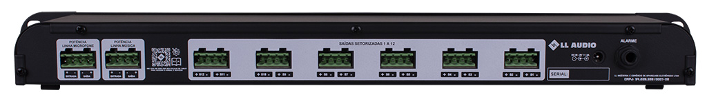 Potência máxima por saída: 50W RMS em 70V / Mesma do amplificador ligado para linha de 100V/210V.