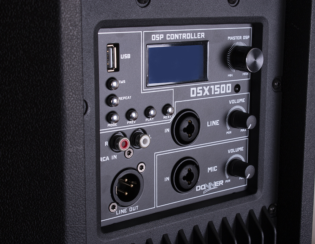 A DSX1500 conta com pré-amplificador com DSP integrado, que oferece 4 modos de equalização ajustados de fábrica — MUSIC, DJ, LIVE e SPEECH —,