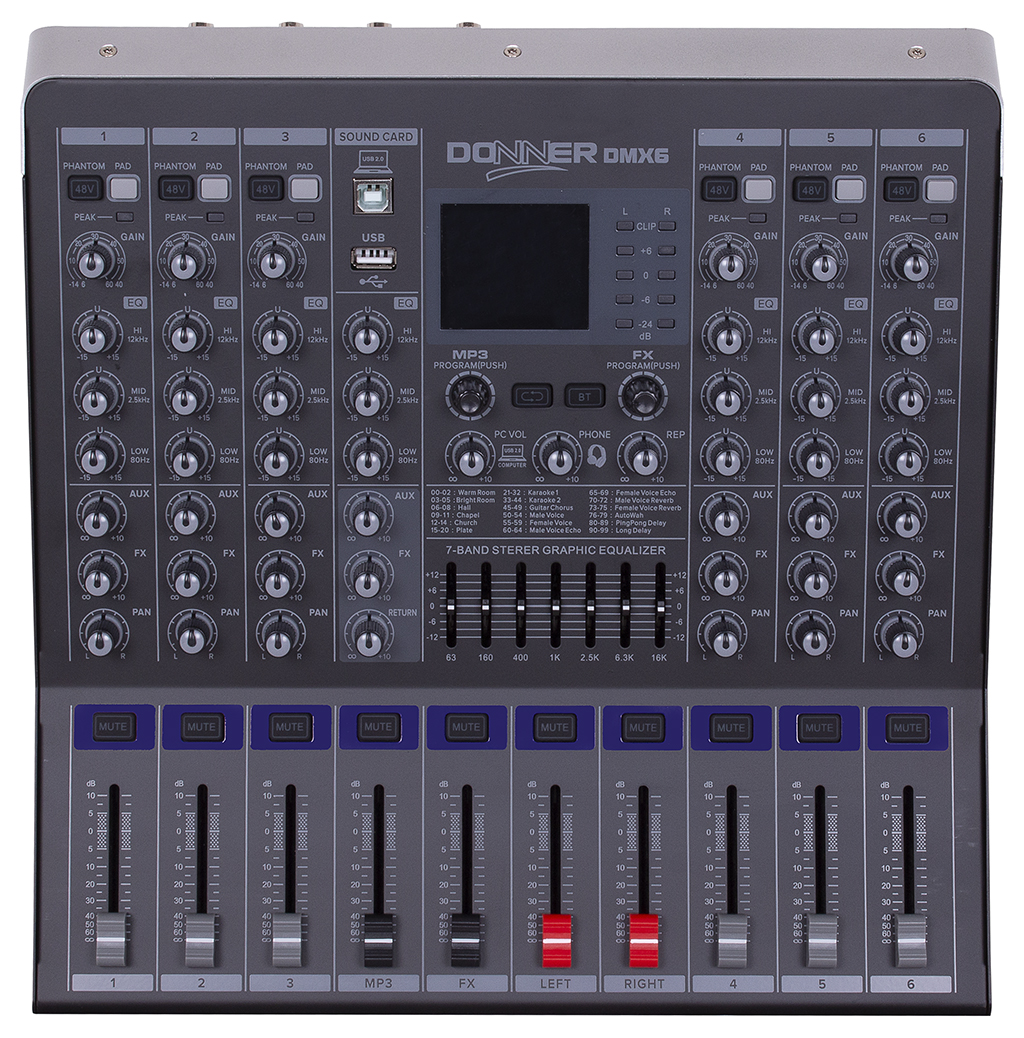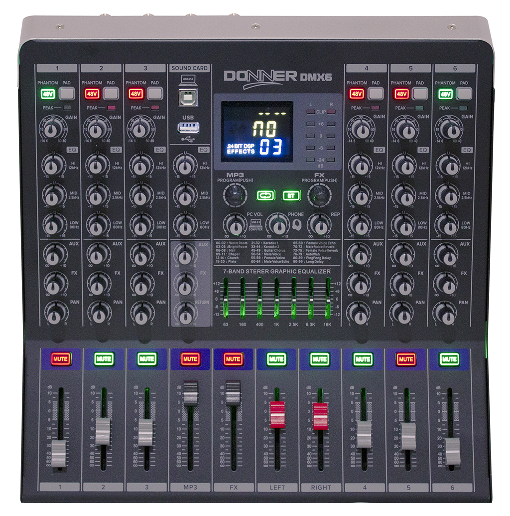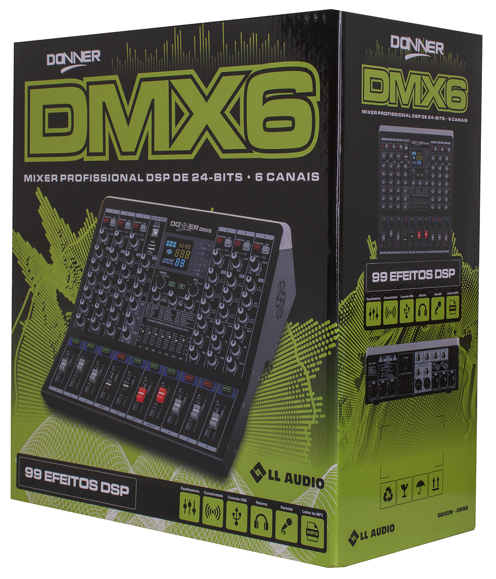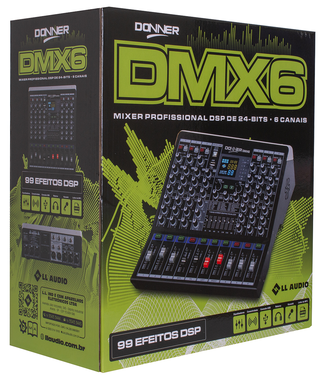 A DMX6 é o mixer perfeito para quem exige qualidade e versatilidade em qualquer produção. Com 6 entradas de microfone, interface OTG, efeitos DSP (Processamento digital de Sinais) e equalizador de 7 bandas, ela garante um som limpo e poderoso em todas as situações. Seu display colorido facilita o controle e deixa a operação muito mais intuitiva. Bluetooth, gravação integrada e phantom power de 48 V completam esse equipamento robusto, pronto para o palco ou estúdio.