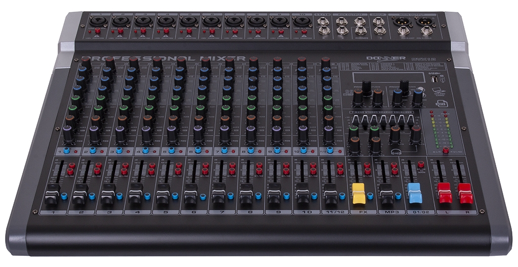 • 12 canais de entrada de microfone e linha com ganho, conector COMBO