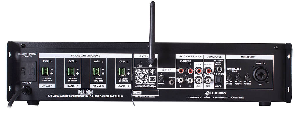 Projetado com amplificação Classe AB, entrega um som limpo e consistente para sonorização de ambientes como academias, bares, empresas, áreas de lazer, clínicas, espaços gourmet e outros.