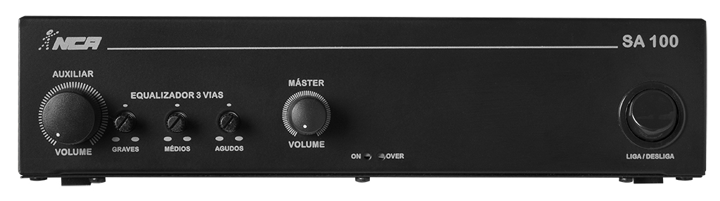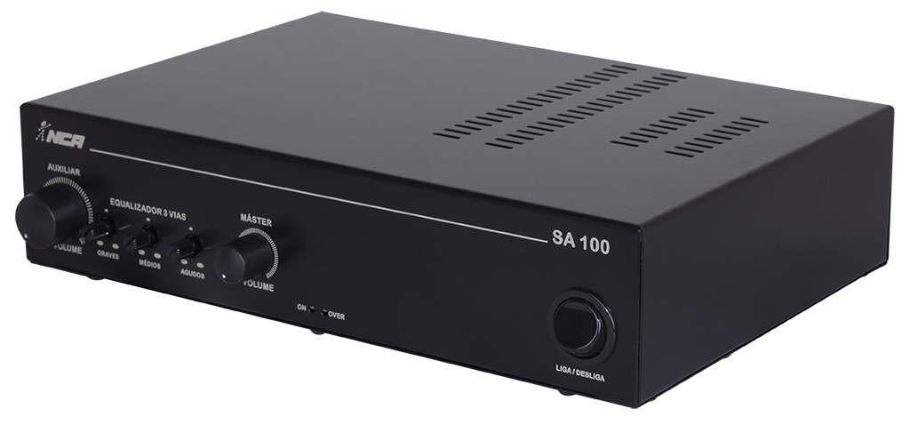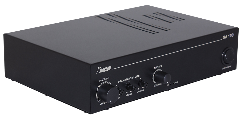 O SA 100 é um amplificador de 100W RMS em 4Ω, com volume máster, que permite a ligação direta de 2 caixas de 8Ω ou de até 8 caixas em série/paralelo. Projetado com amplificação Classe AB, entrega som limpo e consistente para sonorização de ambientes como academias, bares, empresas, áreas de lazer, clínicas, espaços gourmet e outros.
