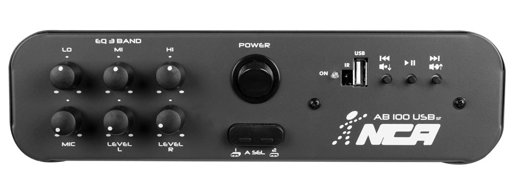 01 Mic P10, 02 Aux RCA, USB